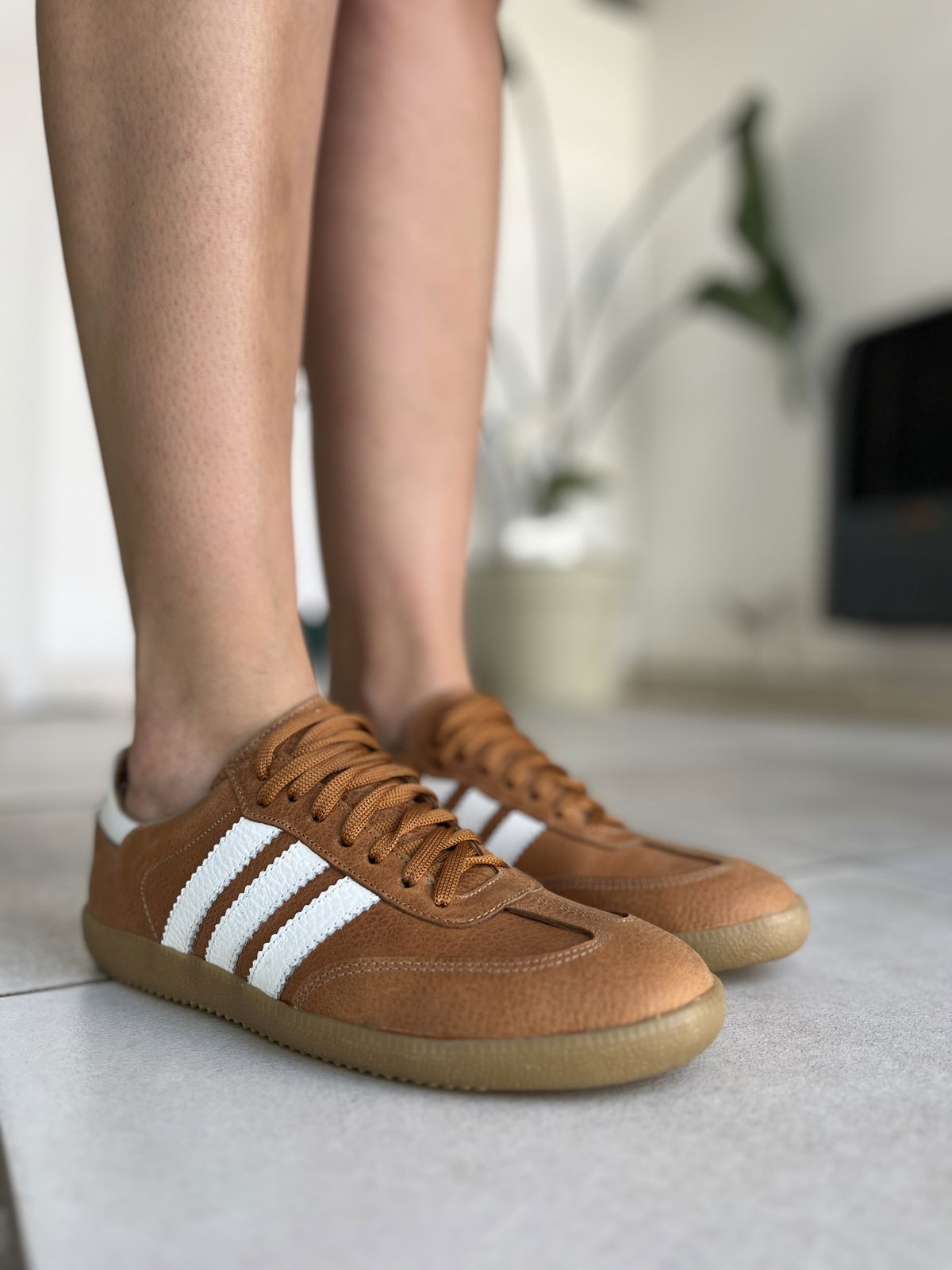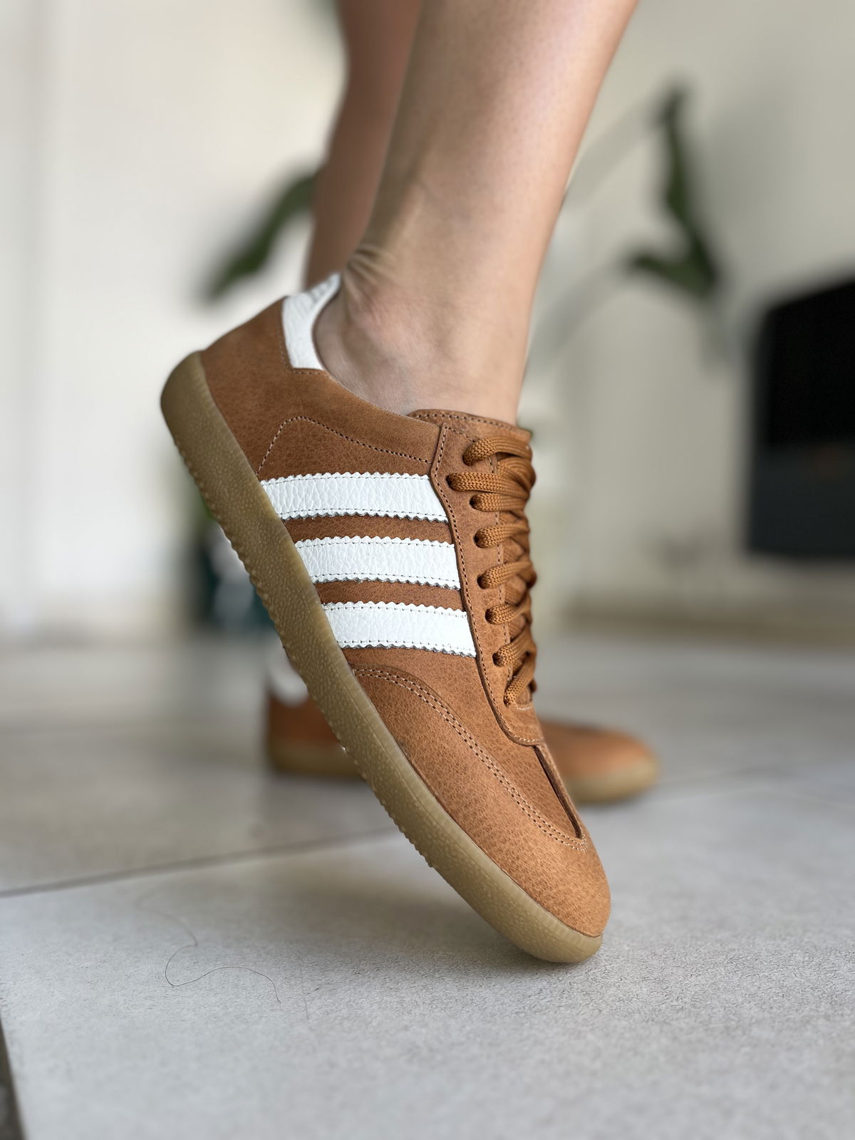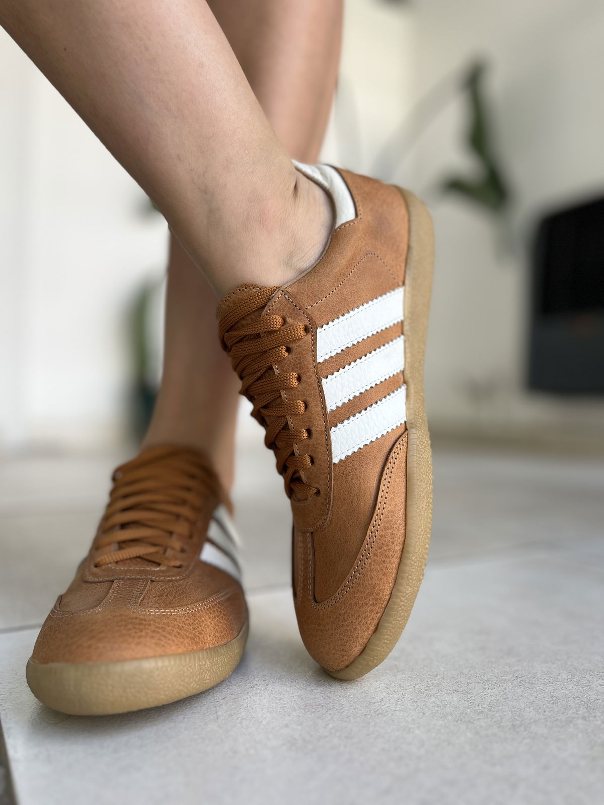 Zapatillas hechasa en cuero vacuno.