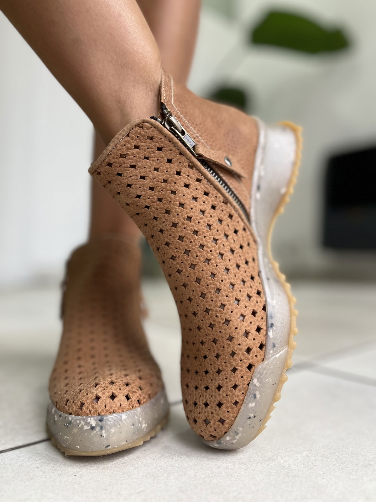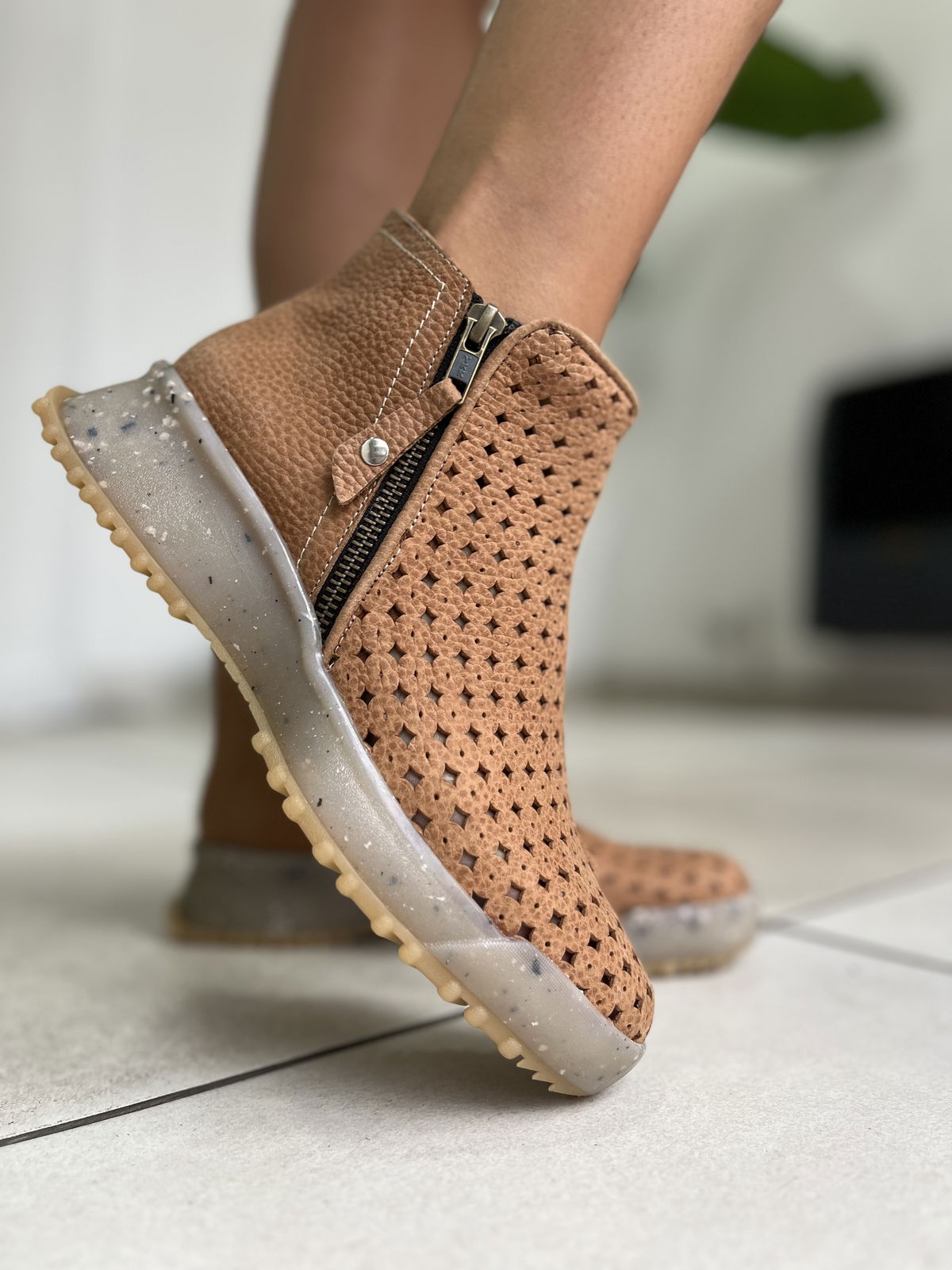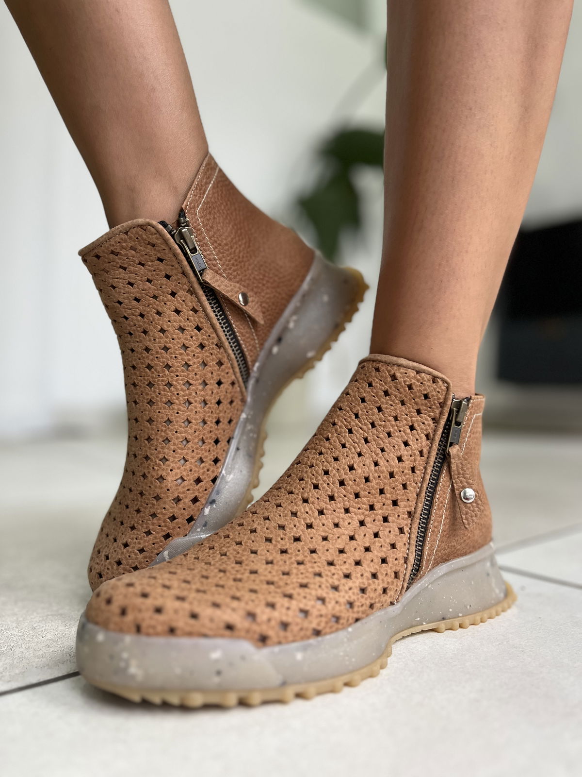 Botineta de cuero vacuno picado.