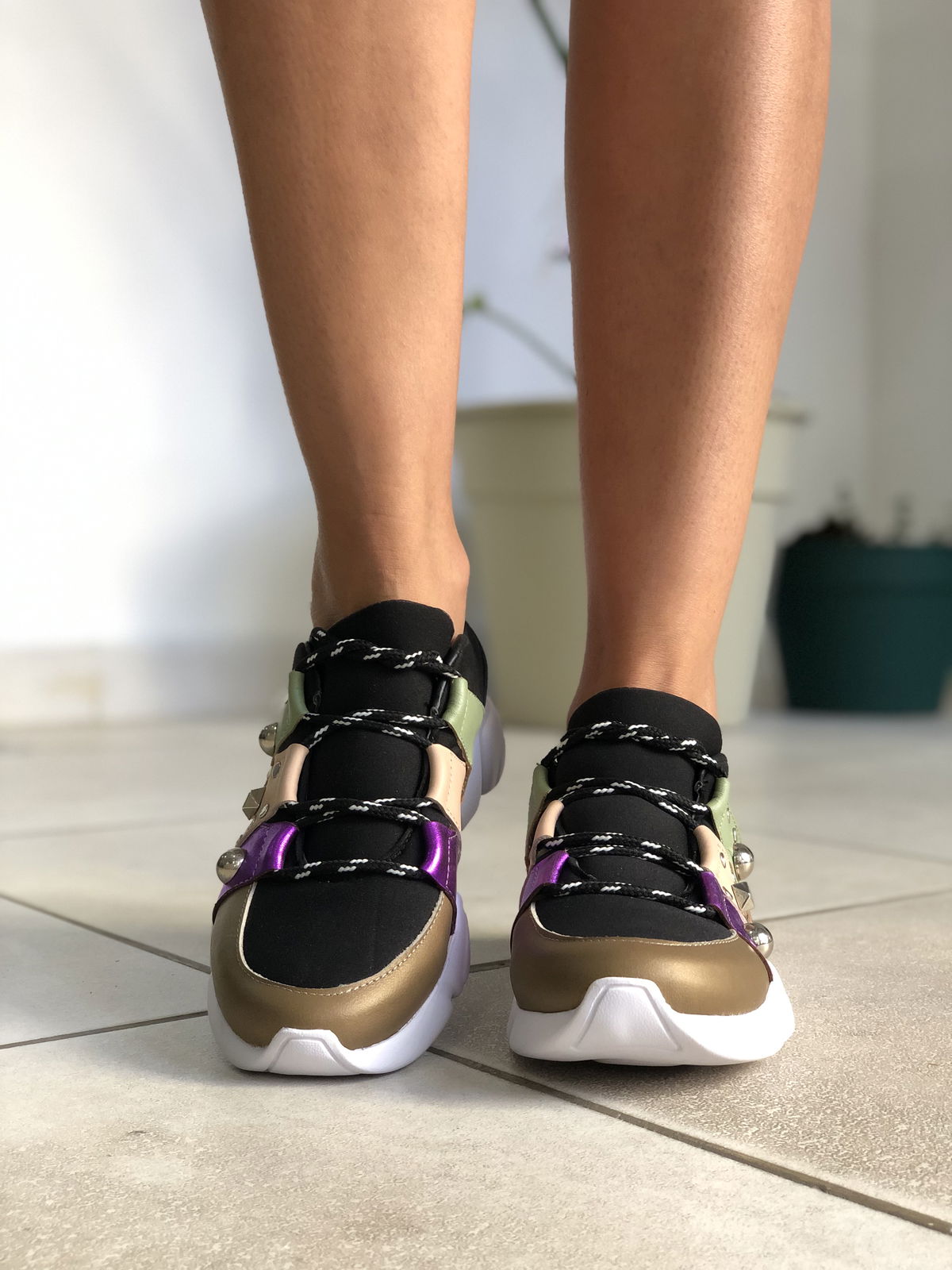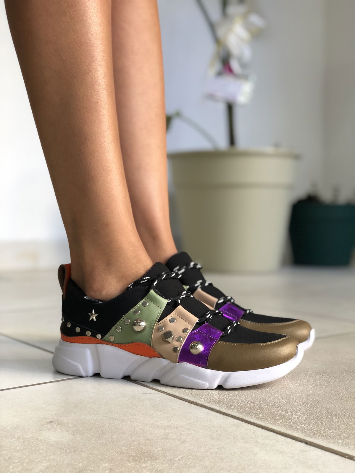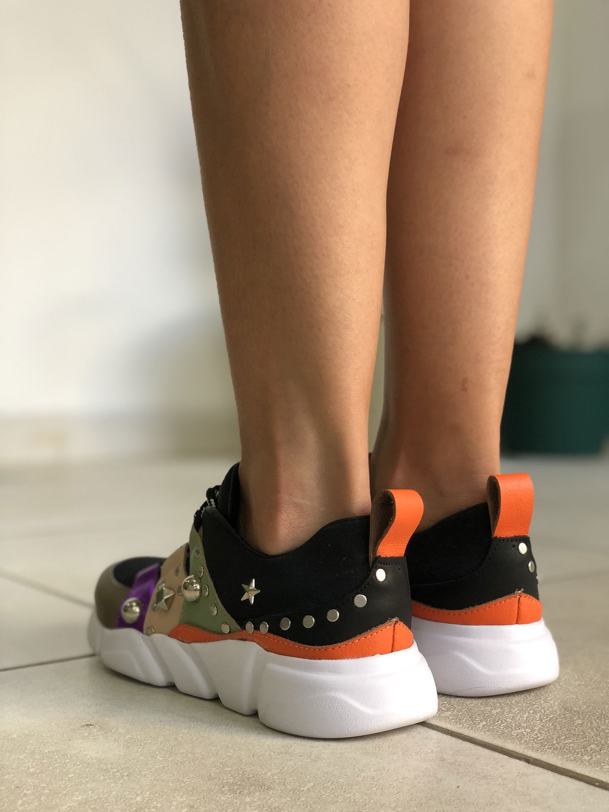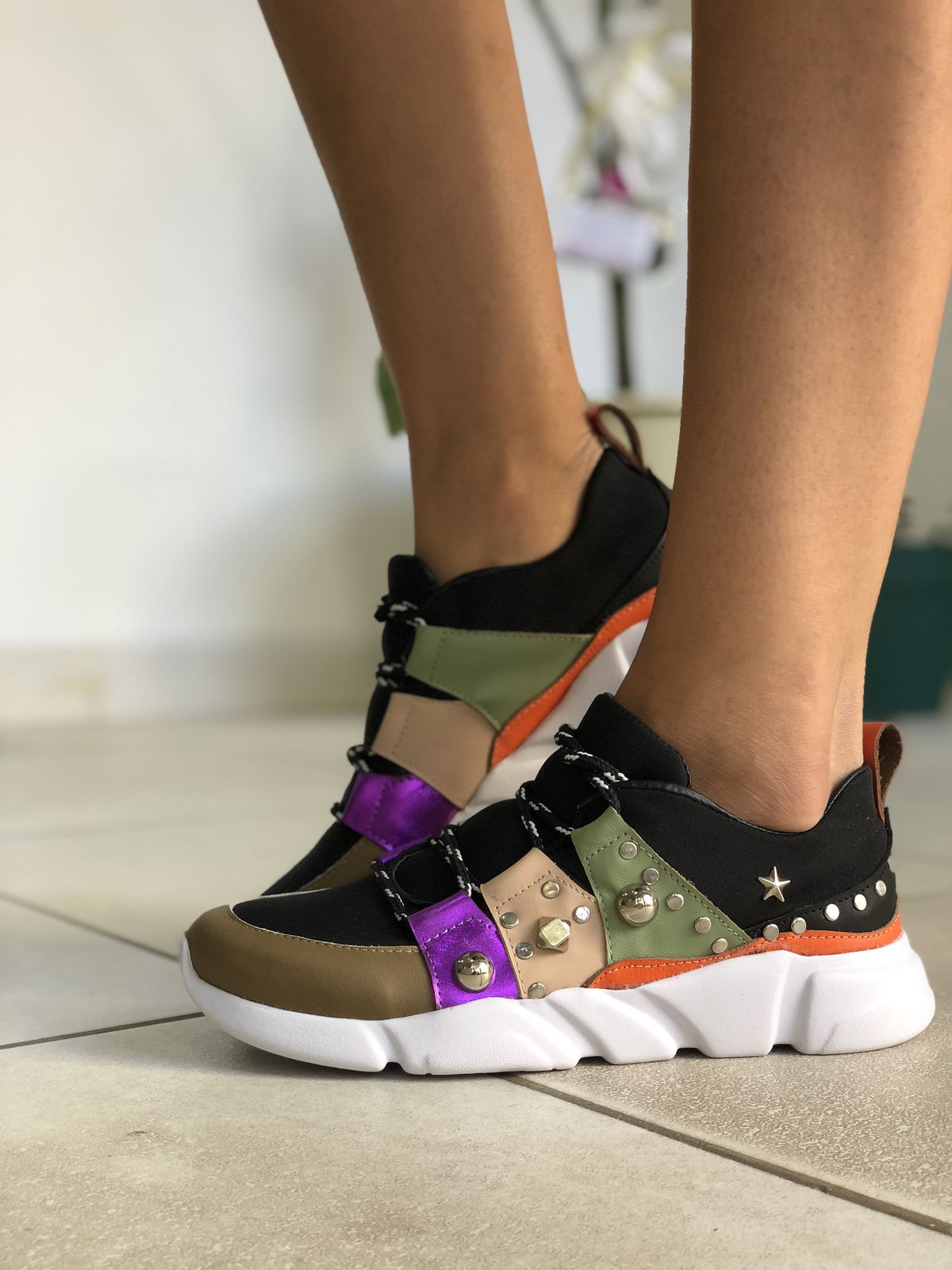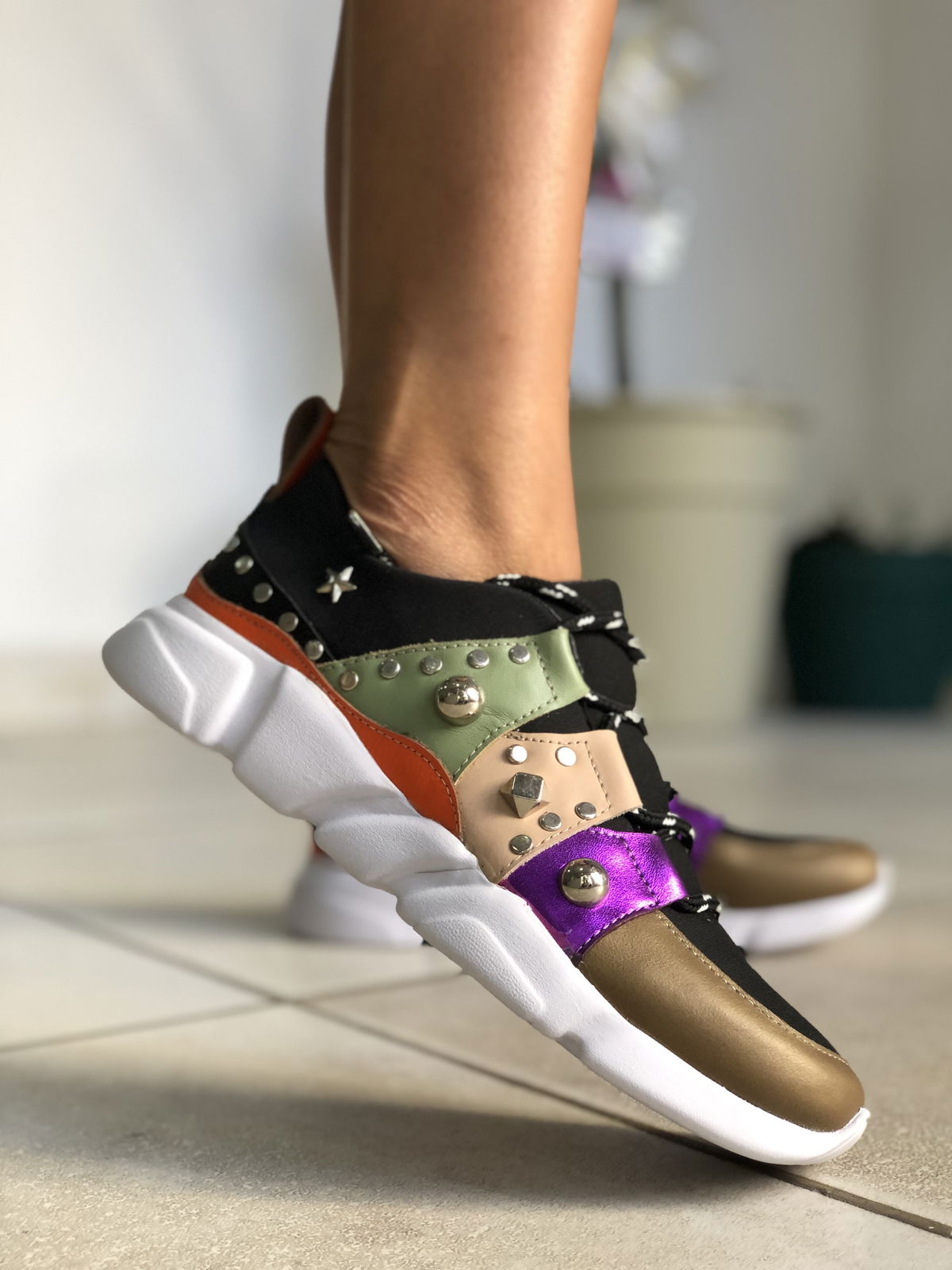 Zapatillas de cuero vacuno, combinadas con neopreno en la parte de la capellada