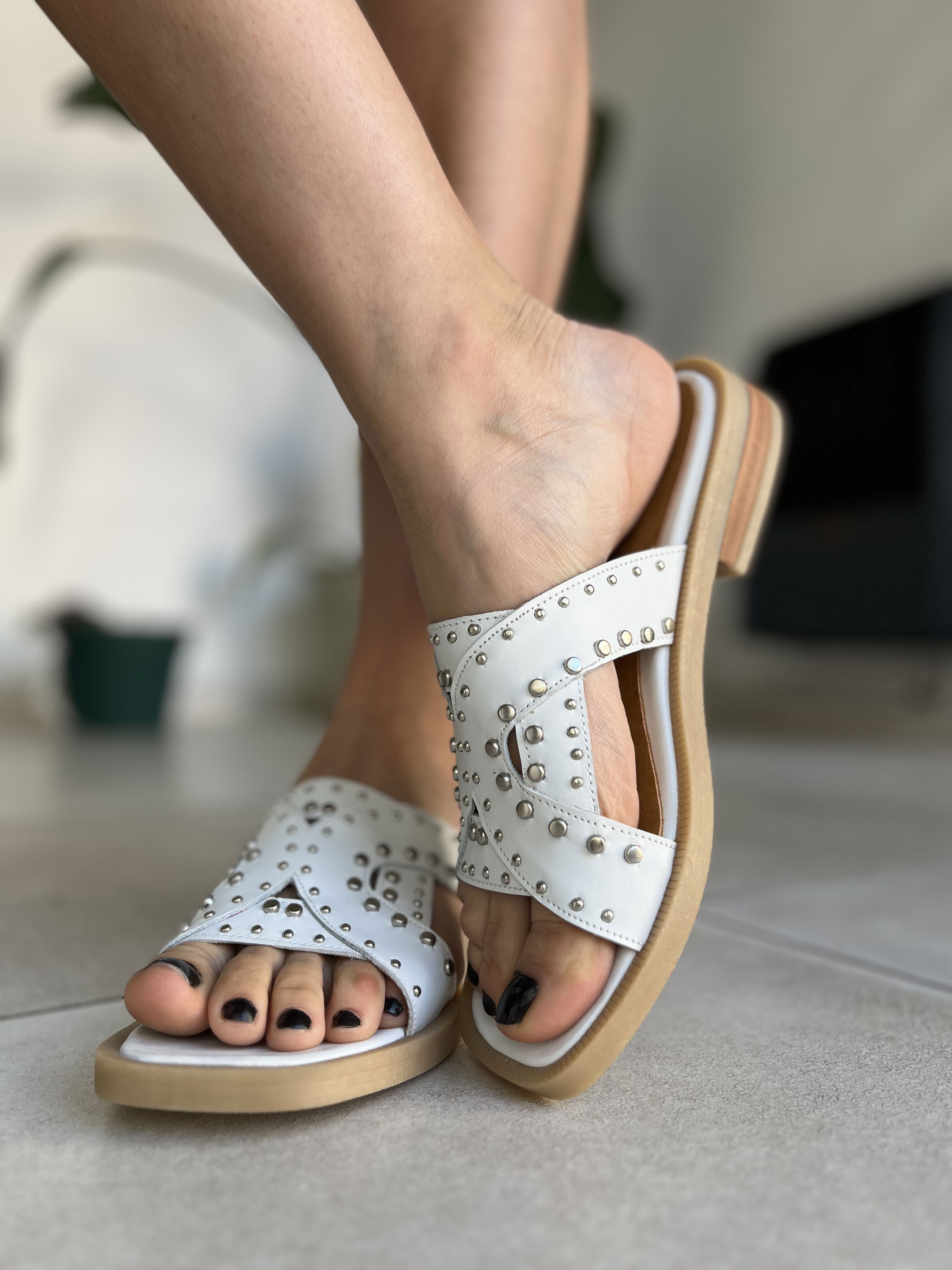 Sandalias de cuero vacuno Base de goma liviana, flexible y antideslizante. Taco de 3 cm. TABLA DE TALLES: 36 - 23,5 cm 37 - 24 cm 38 - 25 cm 39 - 25,5 cm 40 - 26 cm