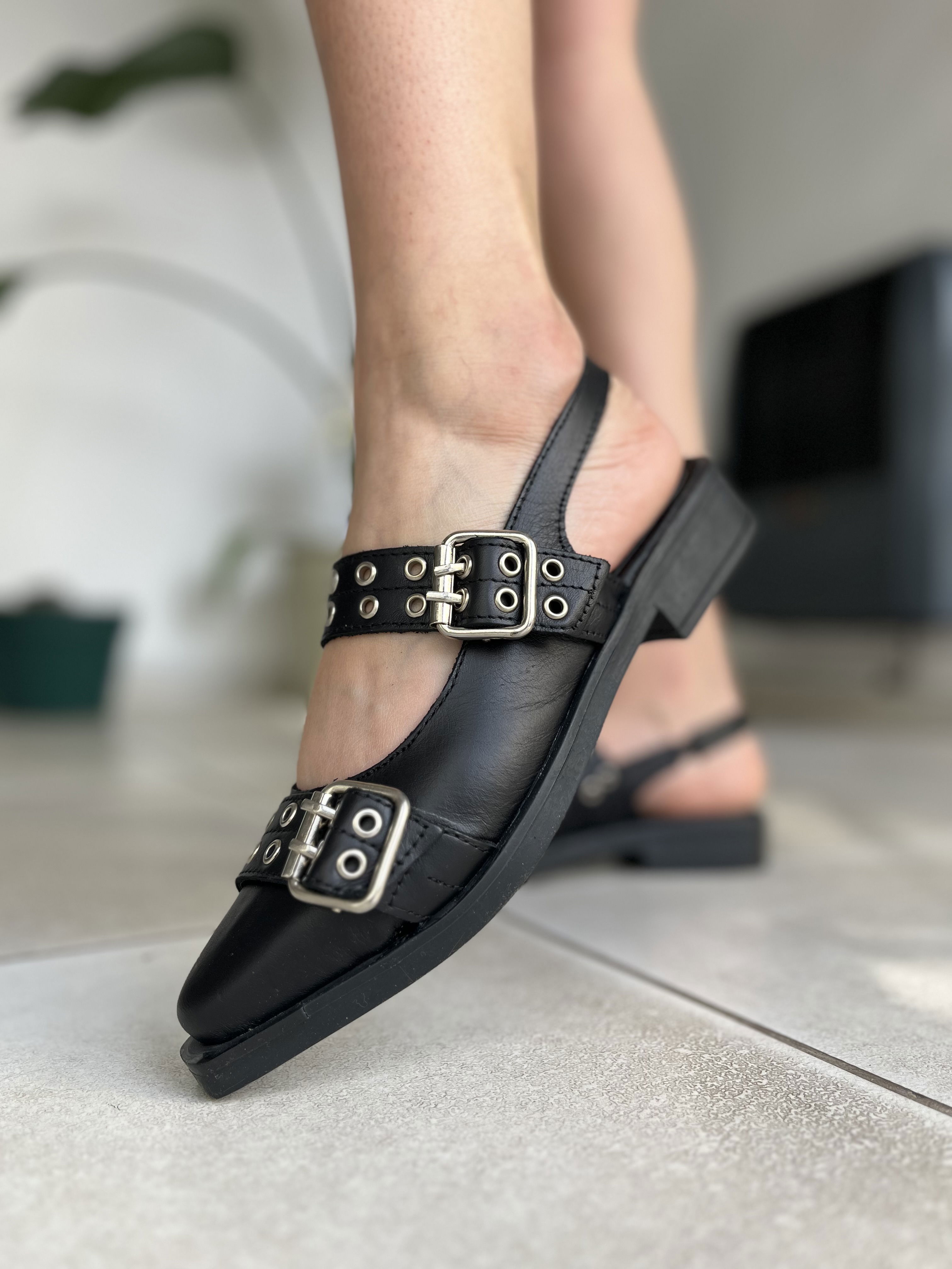 Zueco de cuero vacuno con tira atrás (detalle de elastico) La tira del empeine es regulable. Base de goma liviana, flexible y antideslizante. TABLA DE TALLES: 36 23.5 cm 37 24.5 cm 38 25.0 cm 39 25.7 cm 40 26.2 cm