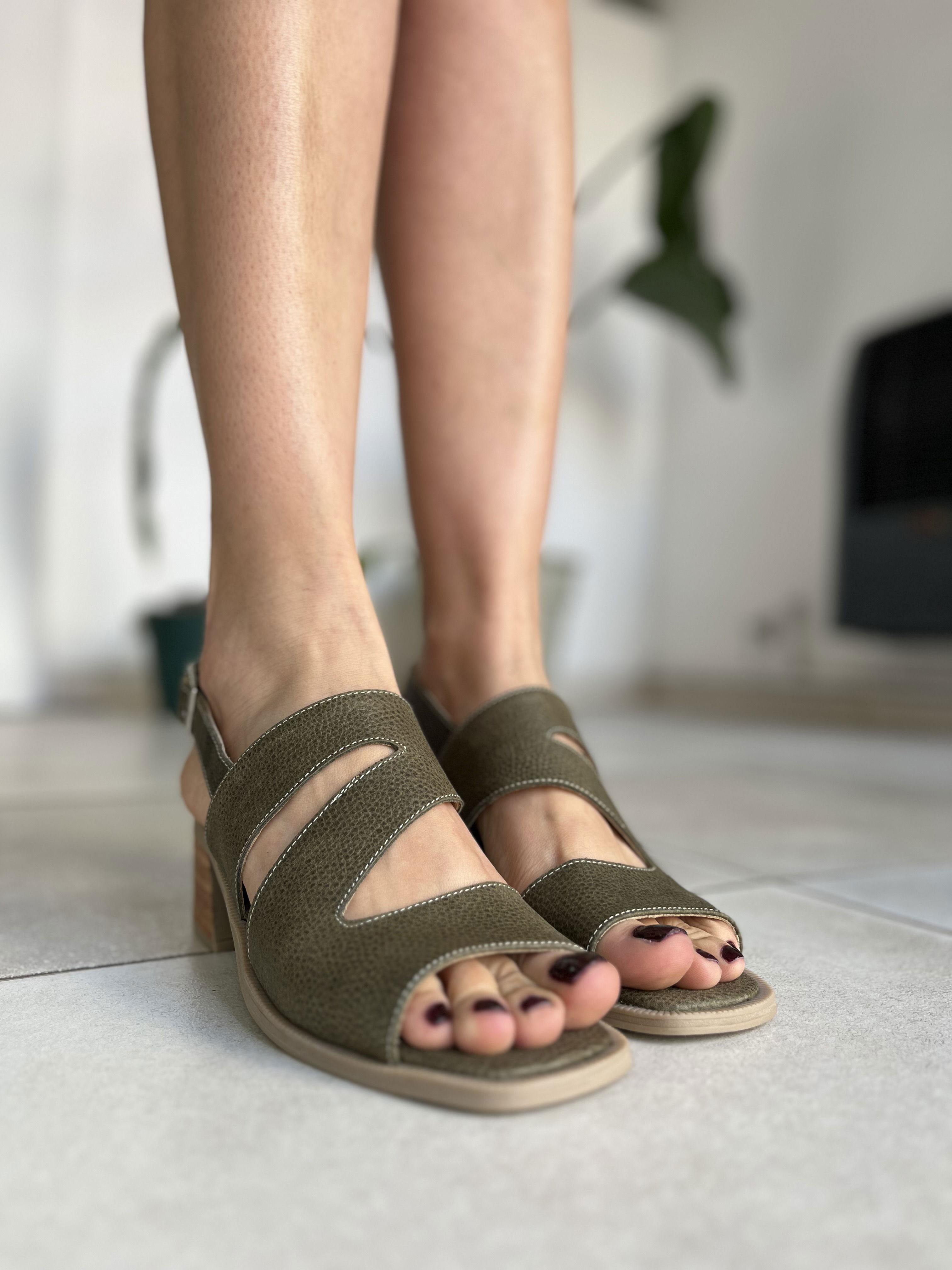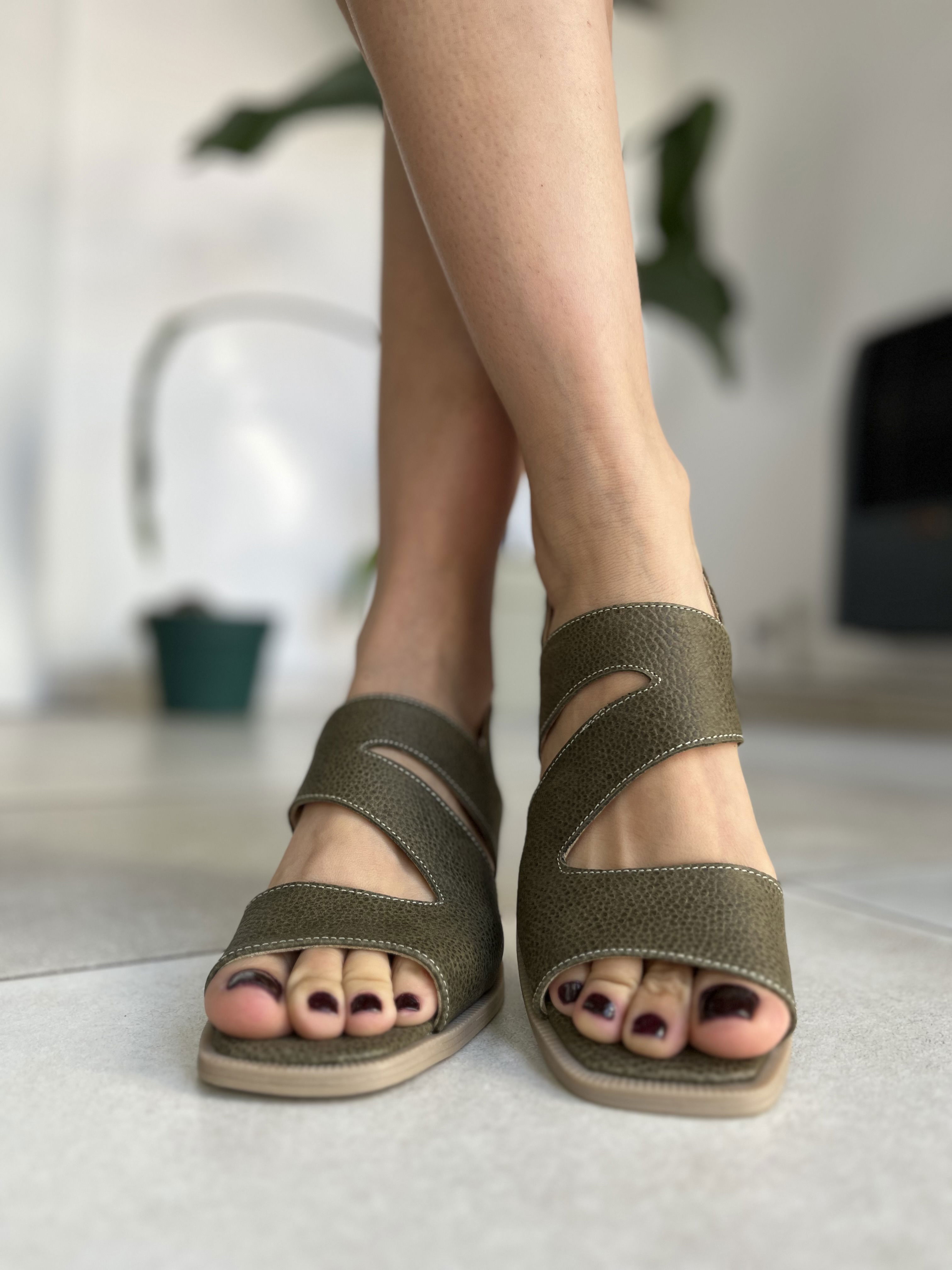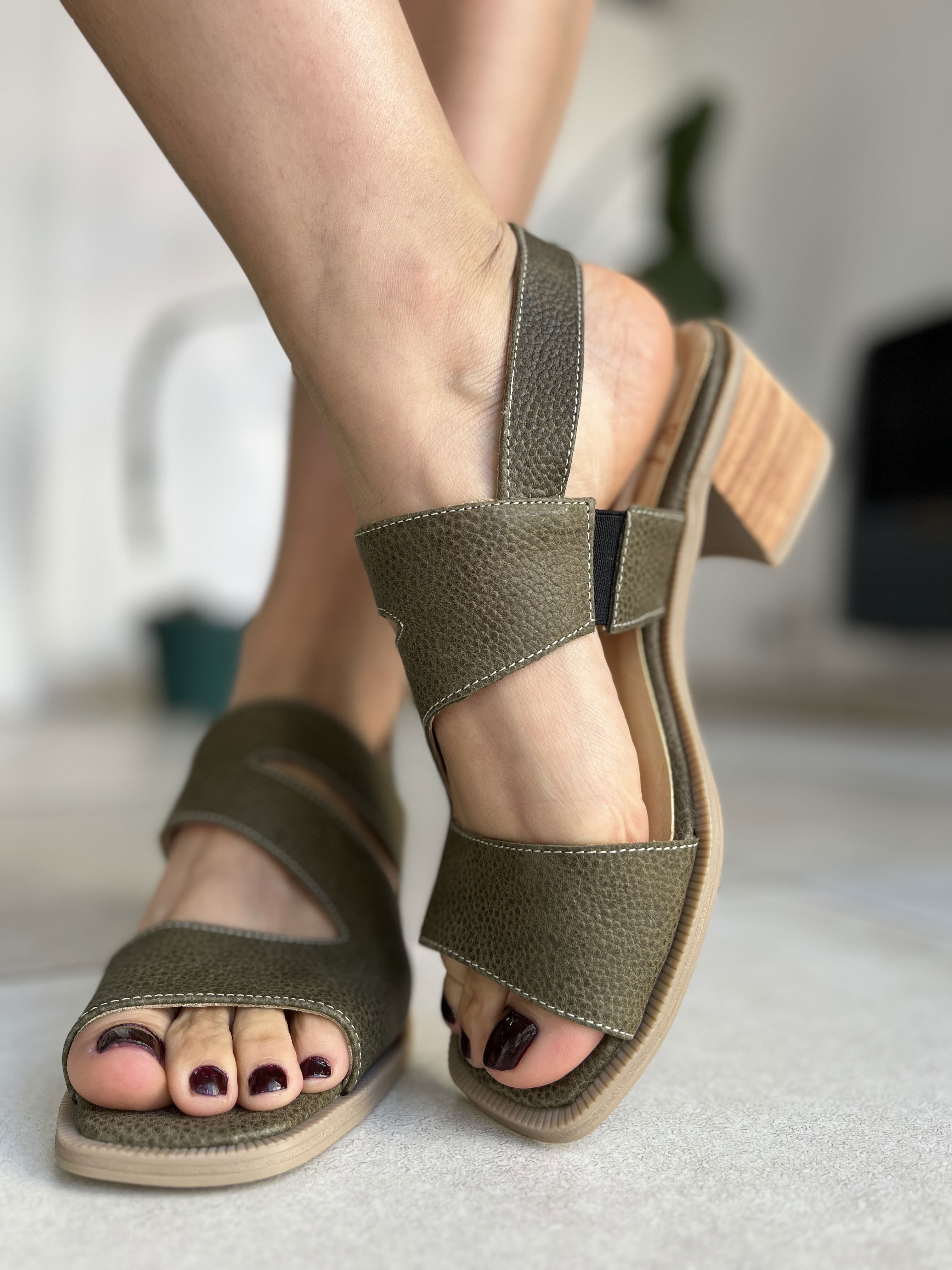 Sandalias de cuero vacuno, detalle de elastico en el lateral.