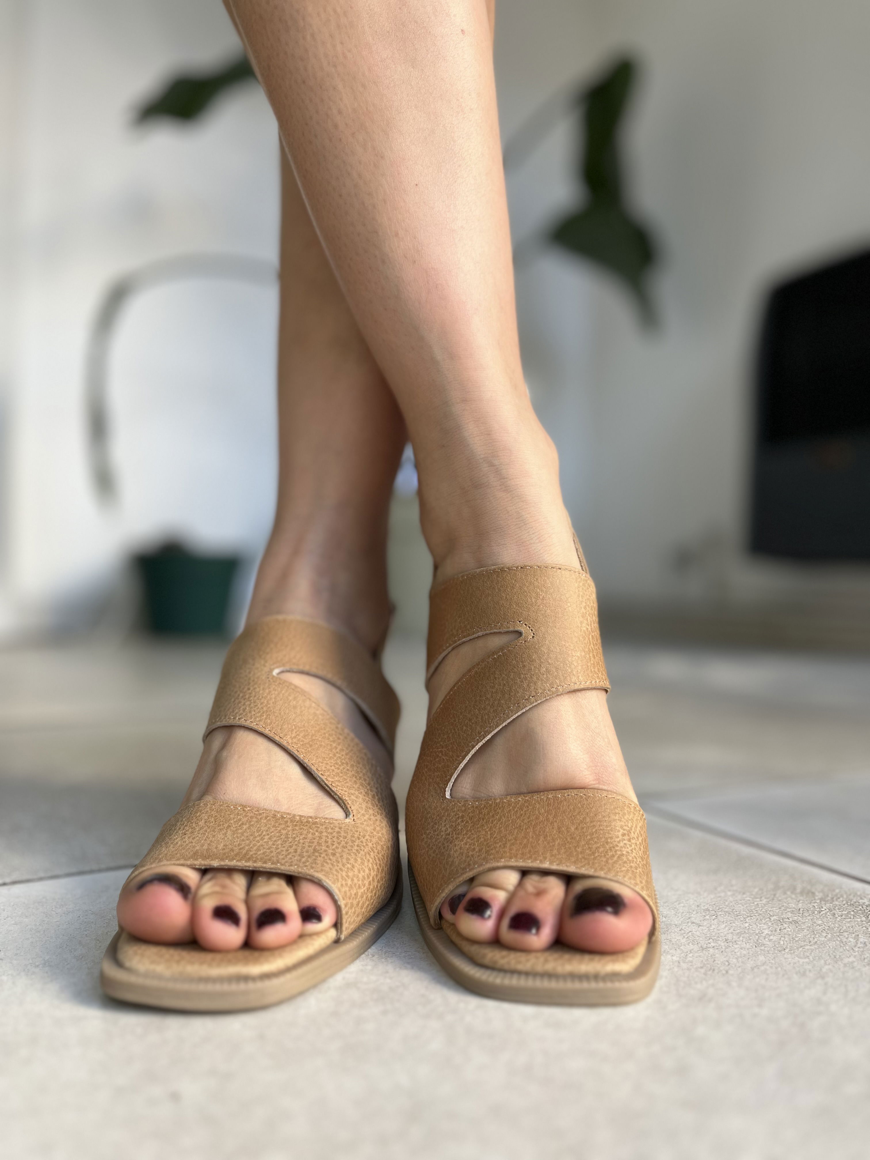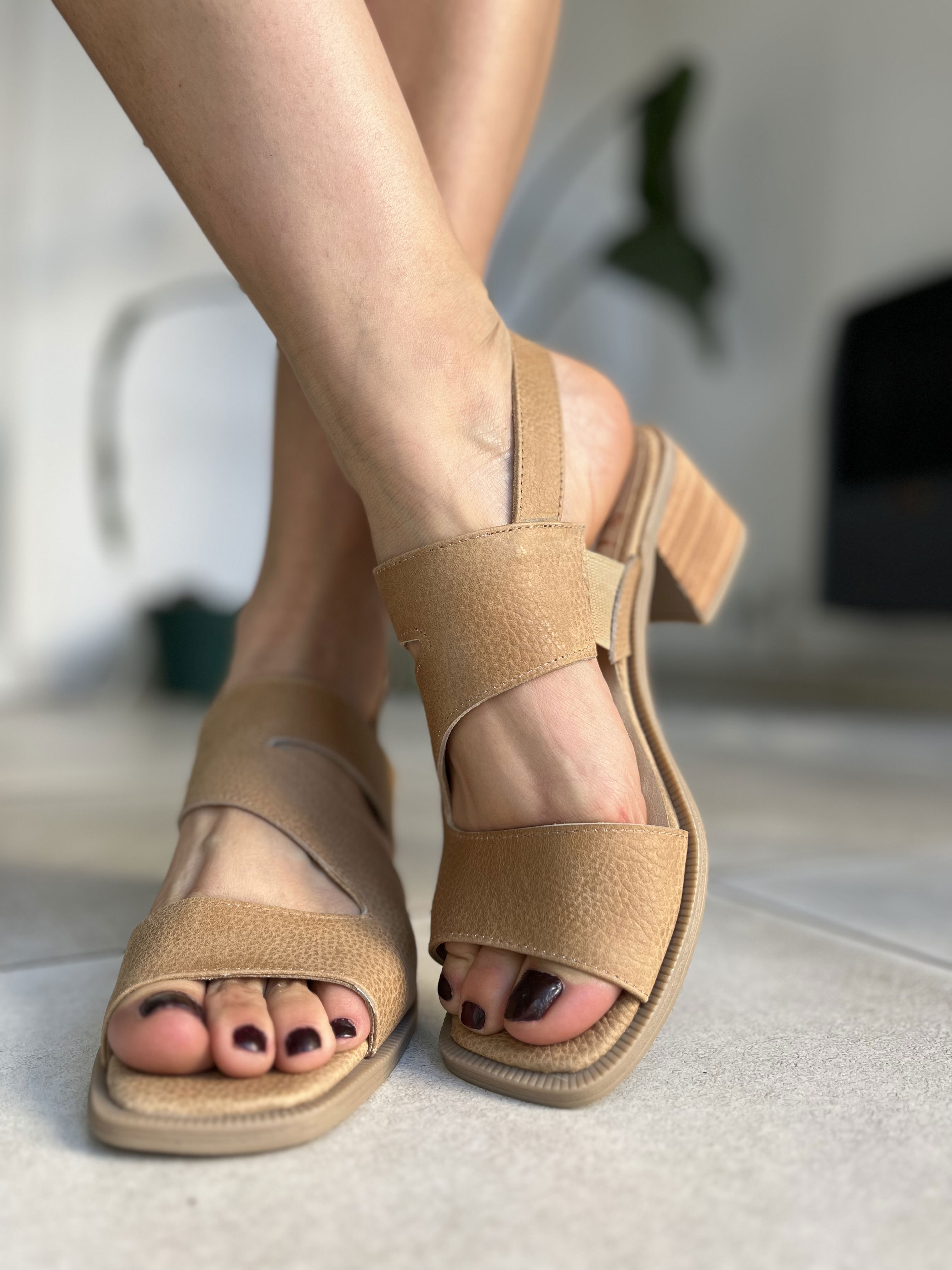 Sandalias de cuero vacuno, detalle de elastico en el lateral.