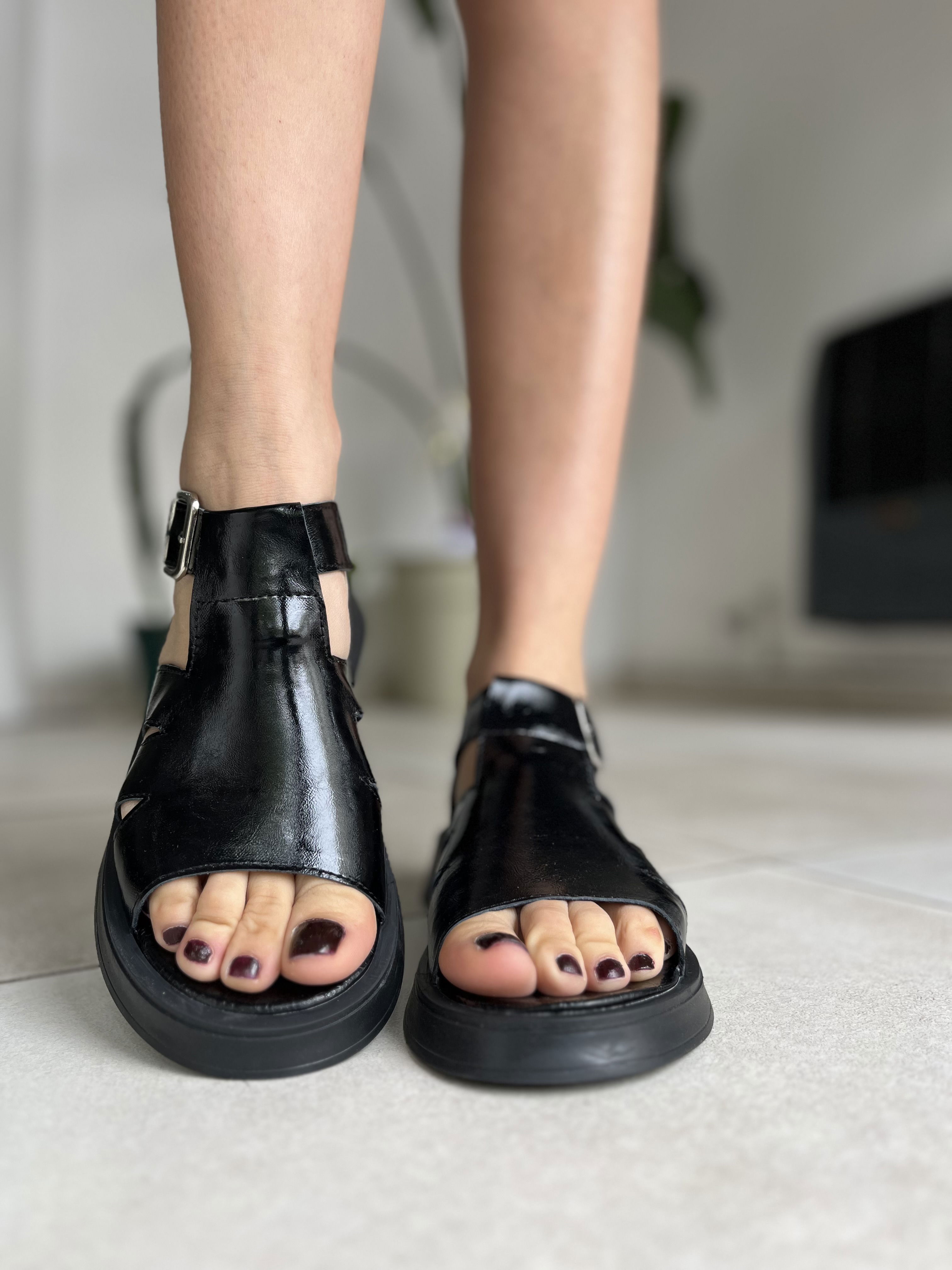 Sandalias de cuero vacuno, los herrajes son de acero inoxidable.