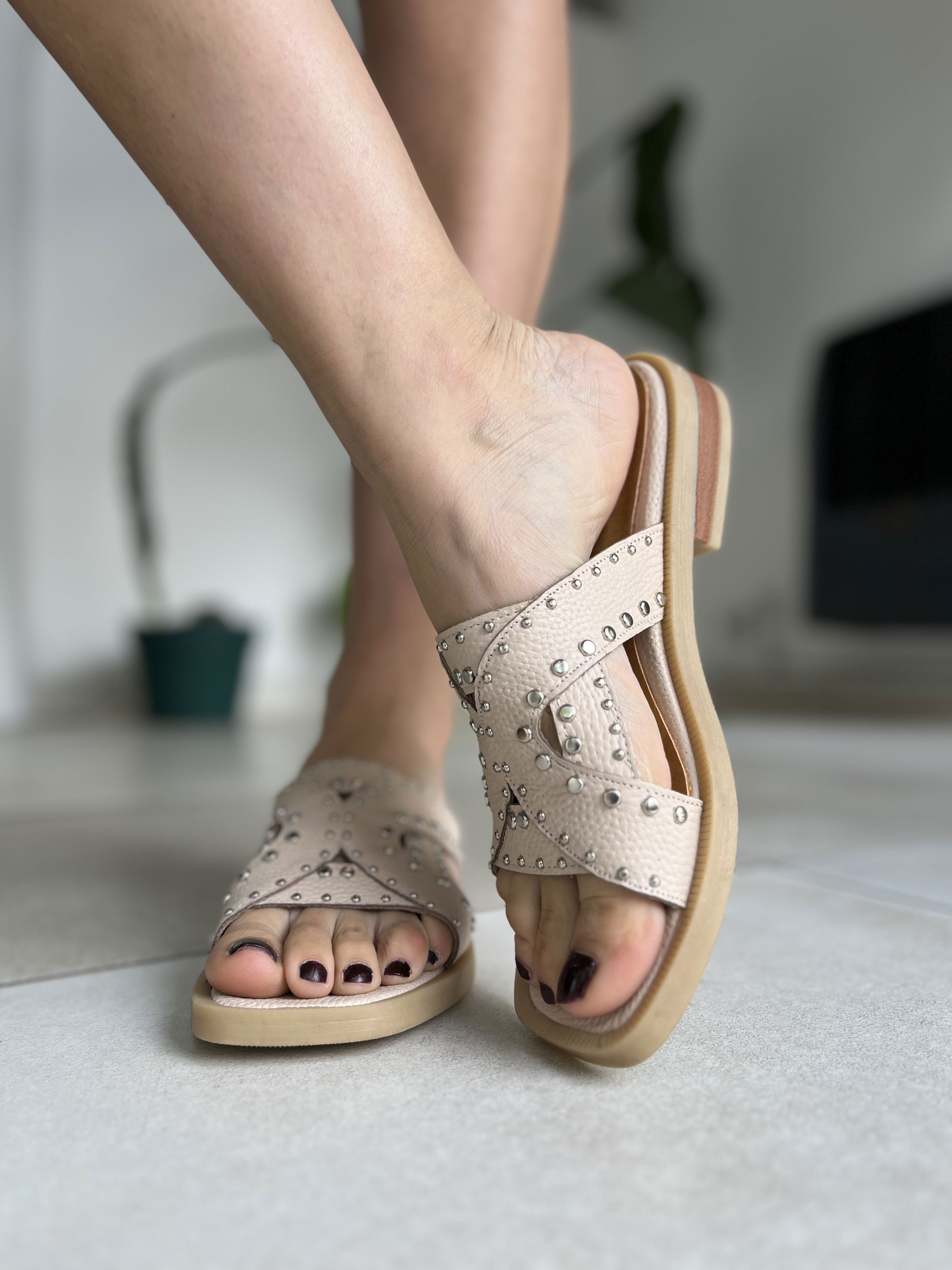 Sandalias de cuero vacuno Base de goma liviana, flexible y antideslizante. Taco de 3 cm. TABLA DE TALLES: 36 - 23,5 cm 37 - 24 cm 38 - 25 cm 39 - 25,5 cm 40 - 26 cm