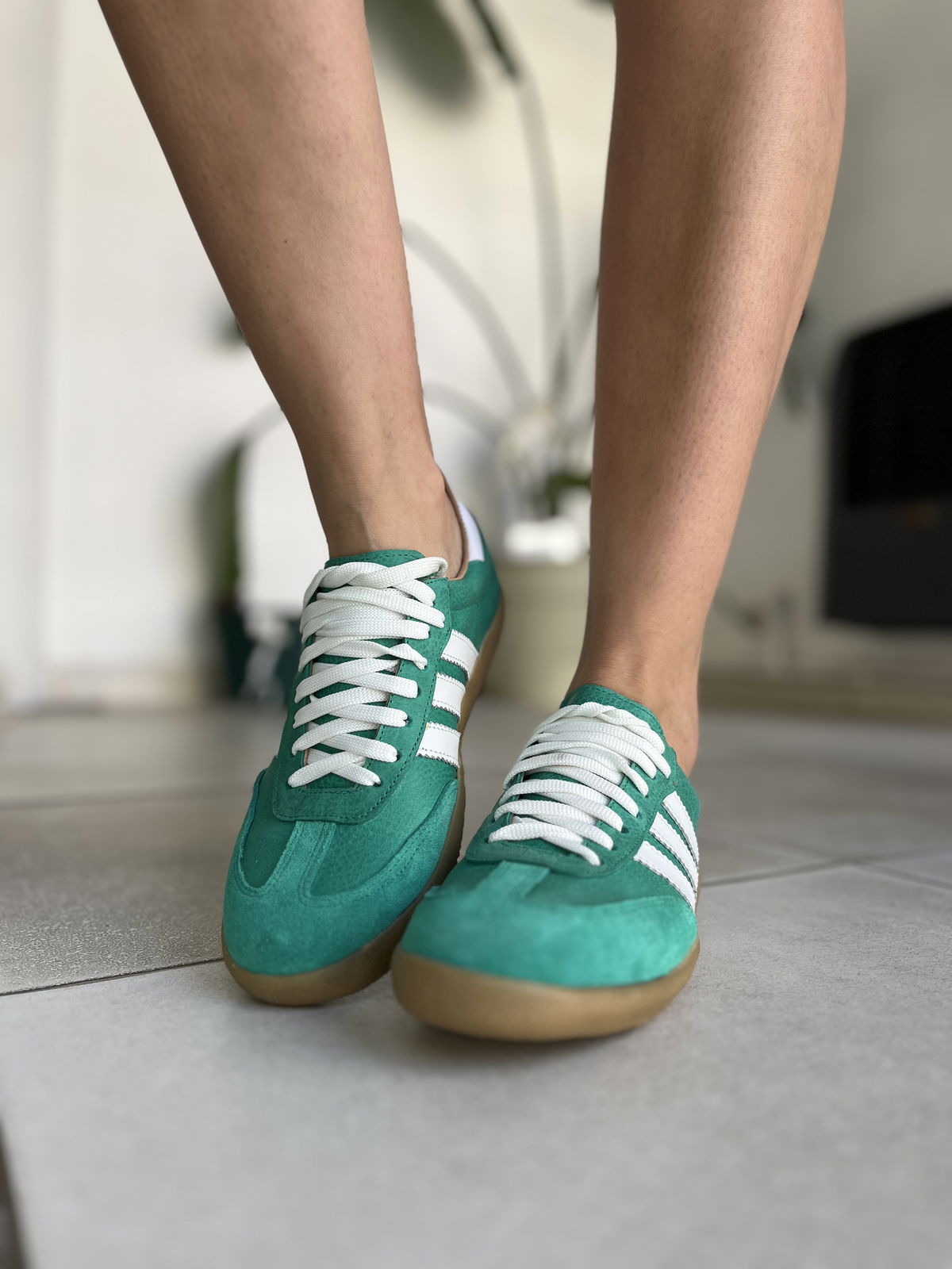 Zapatillas de cuero vacuno, combinadas con gamuzon.
