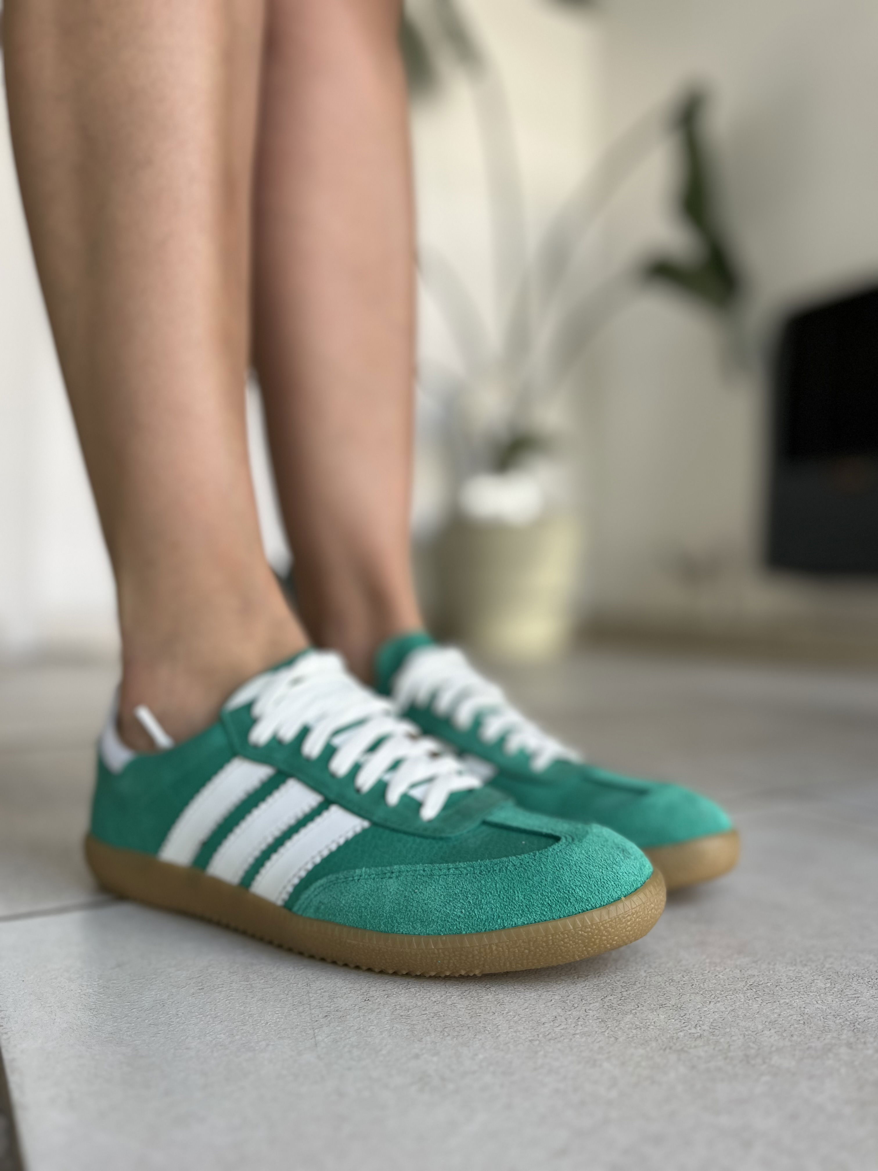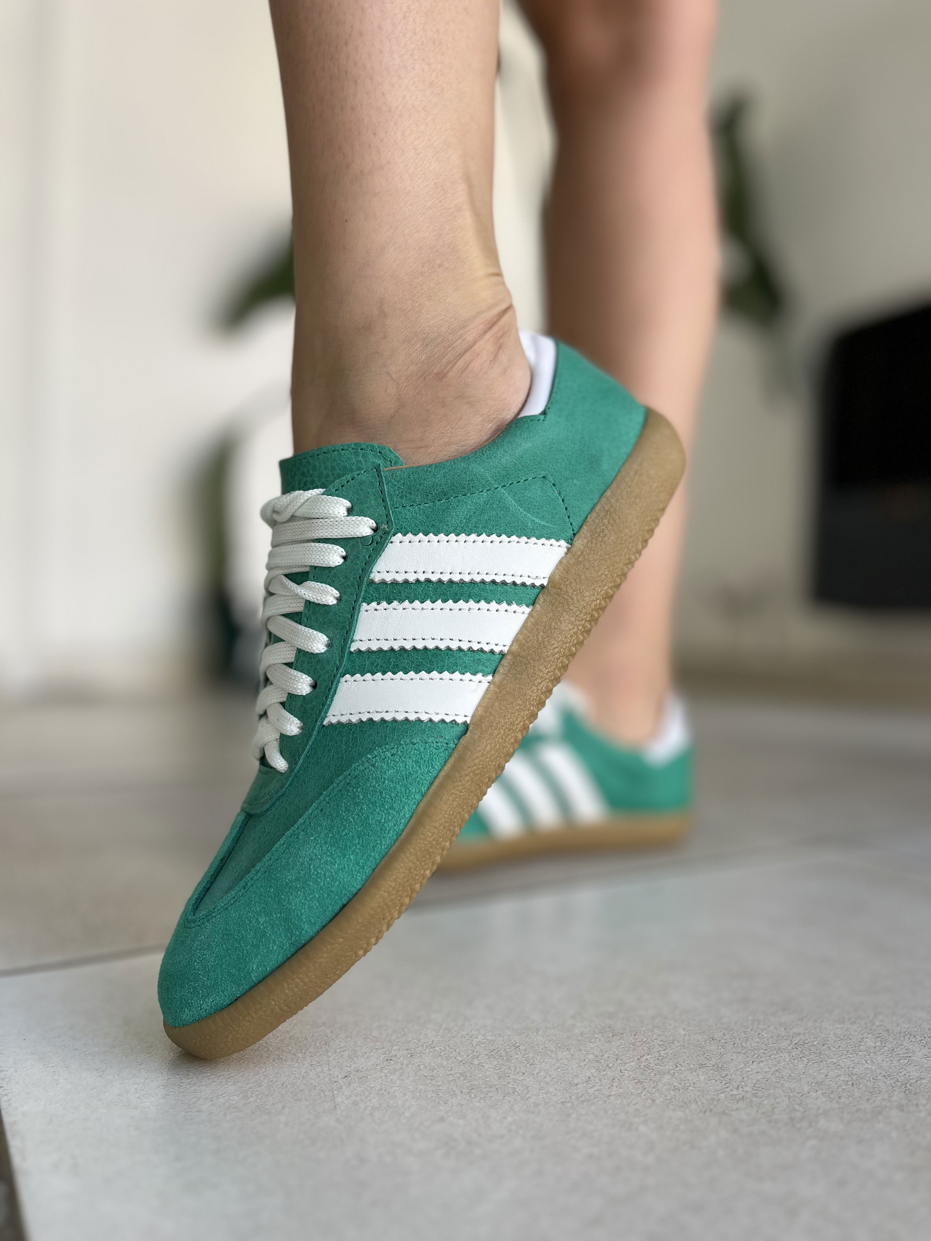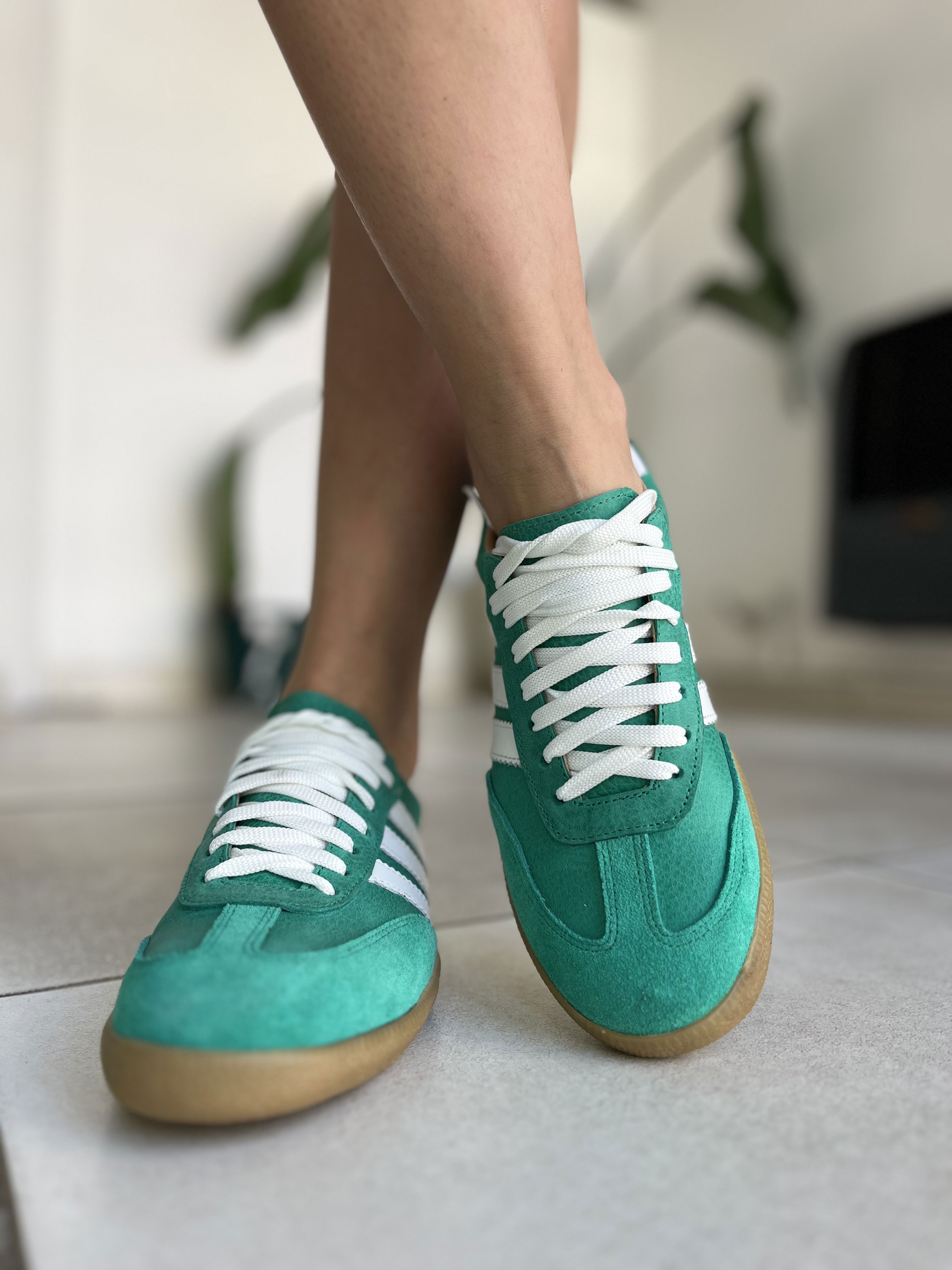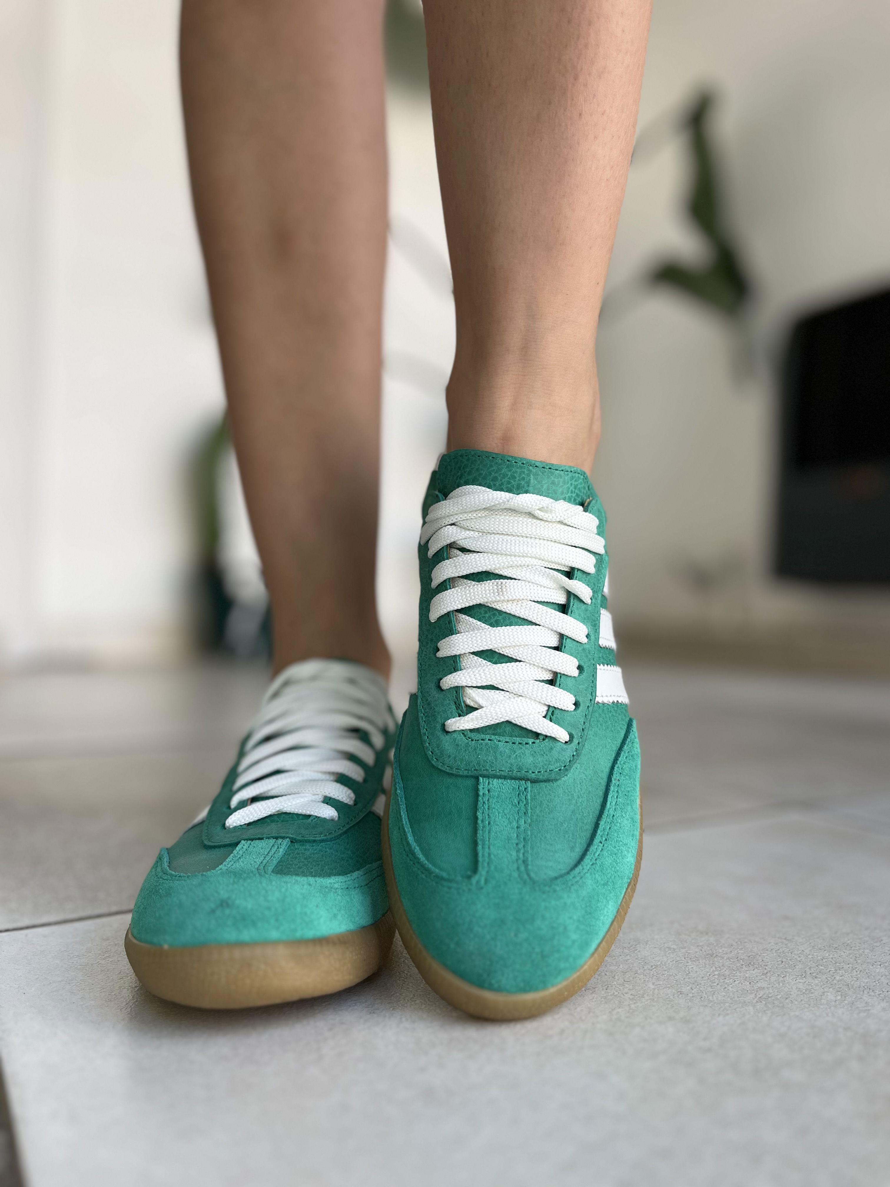 Zapatillas de cuero vacuno, combinadas con gamuzon.