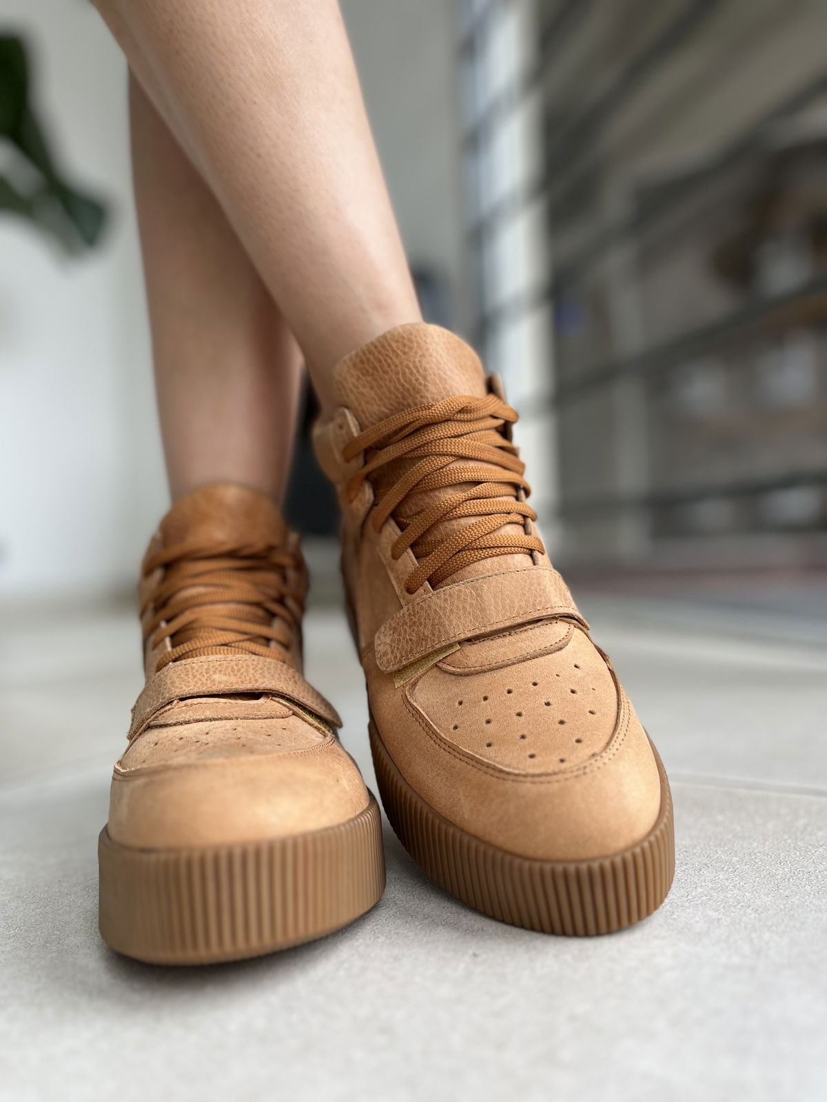 Zapatillas de cuero vacuno, hebilla en la cordonera.