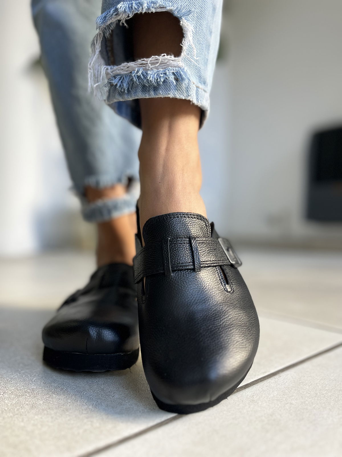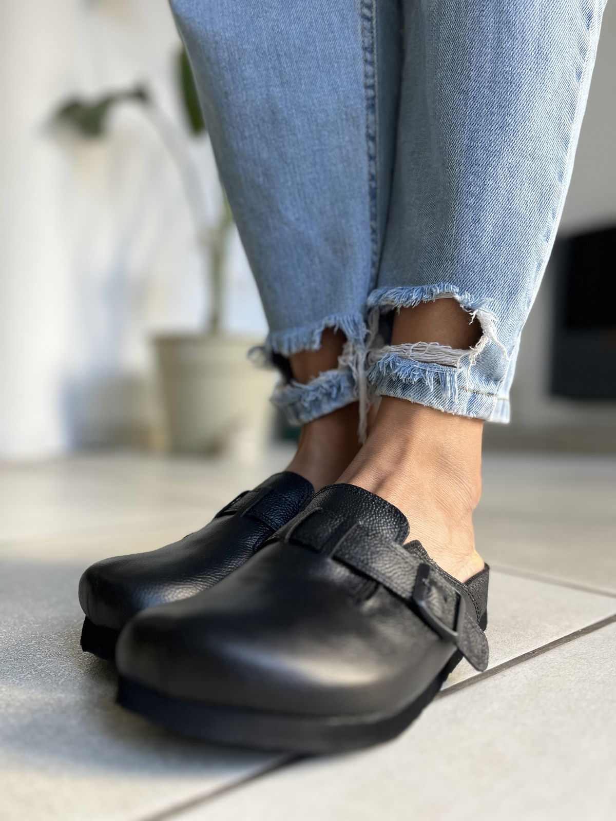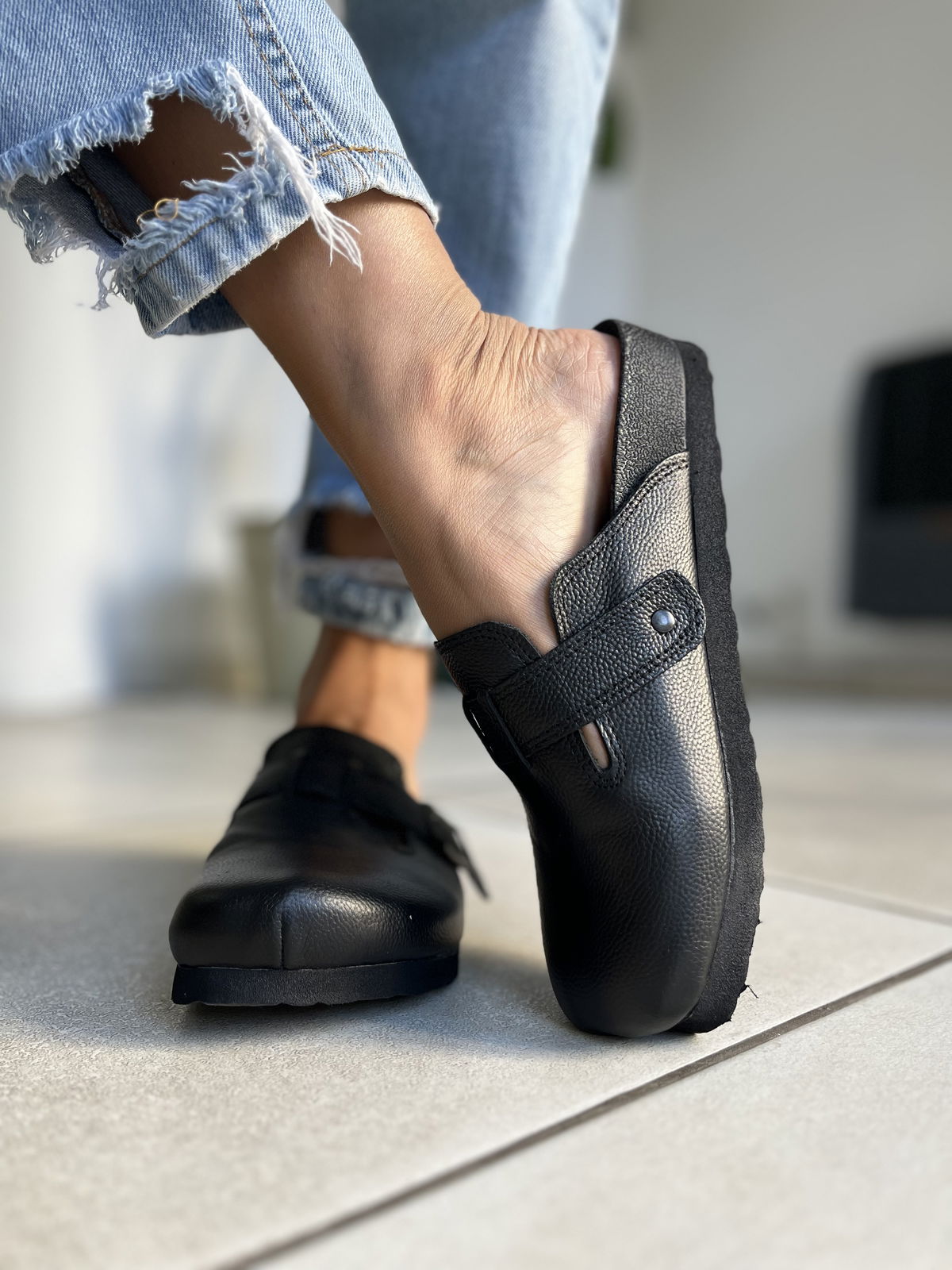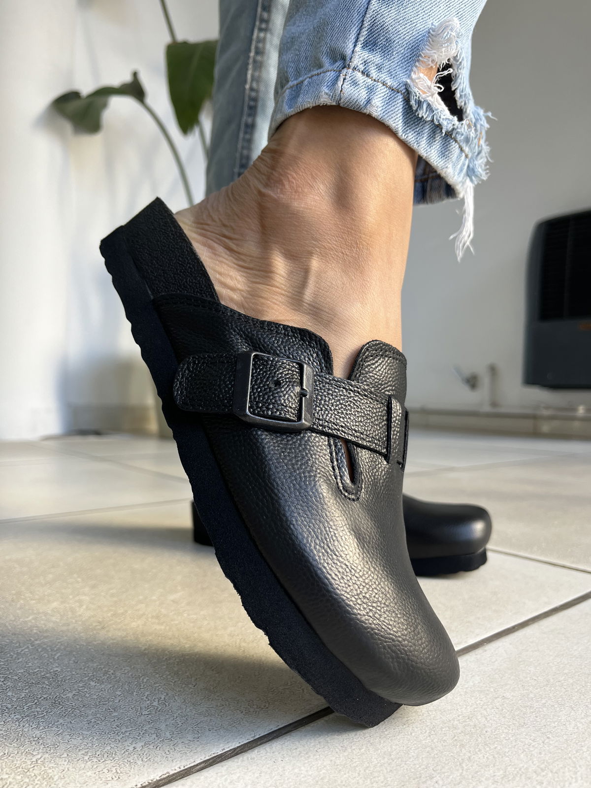 Zuecos realizados en cuero vacuno