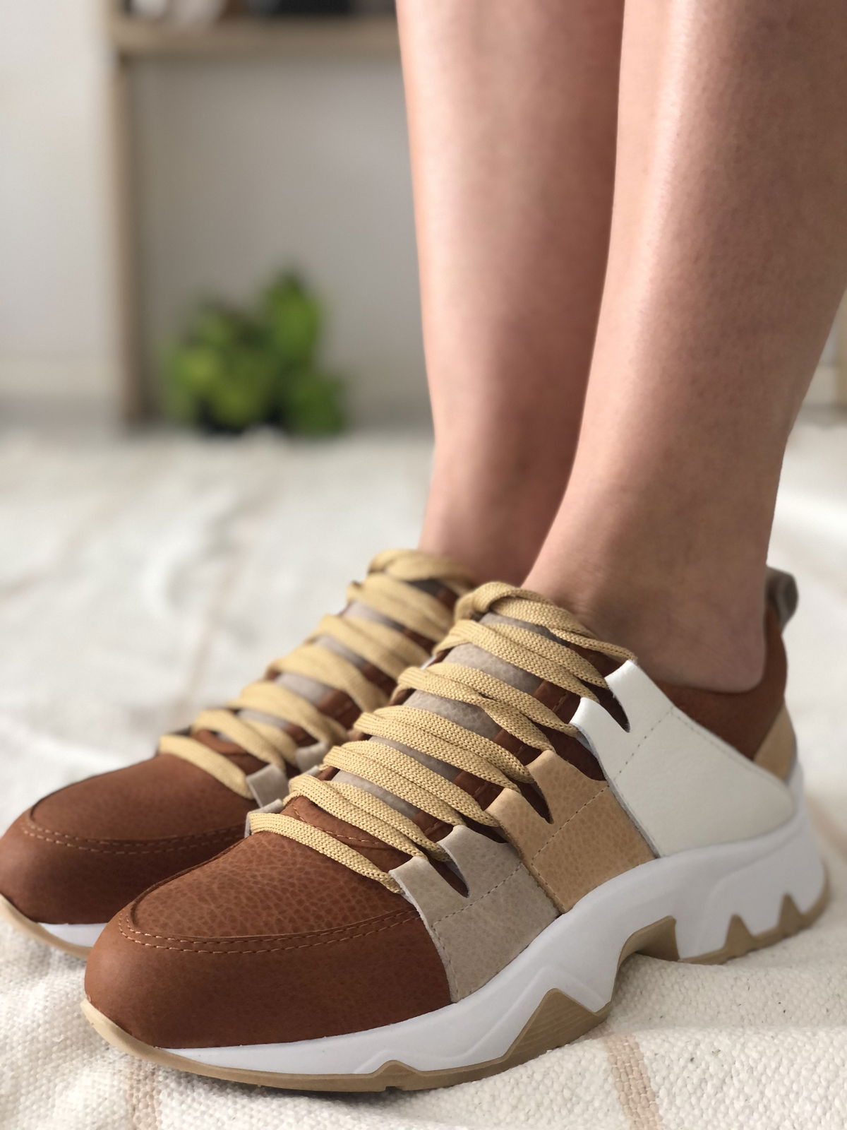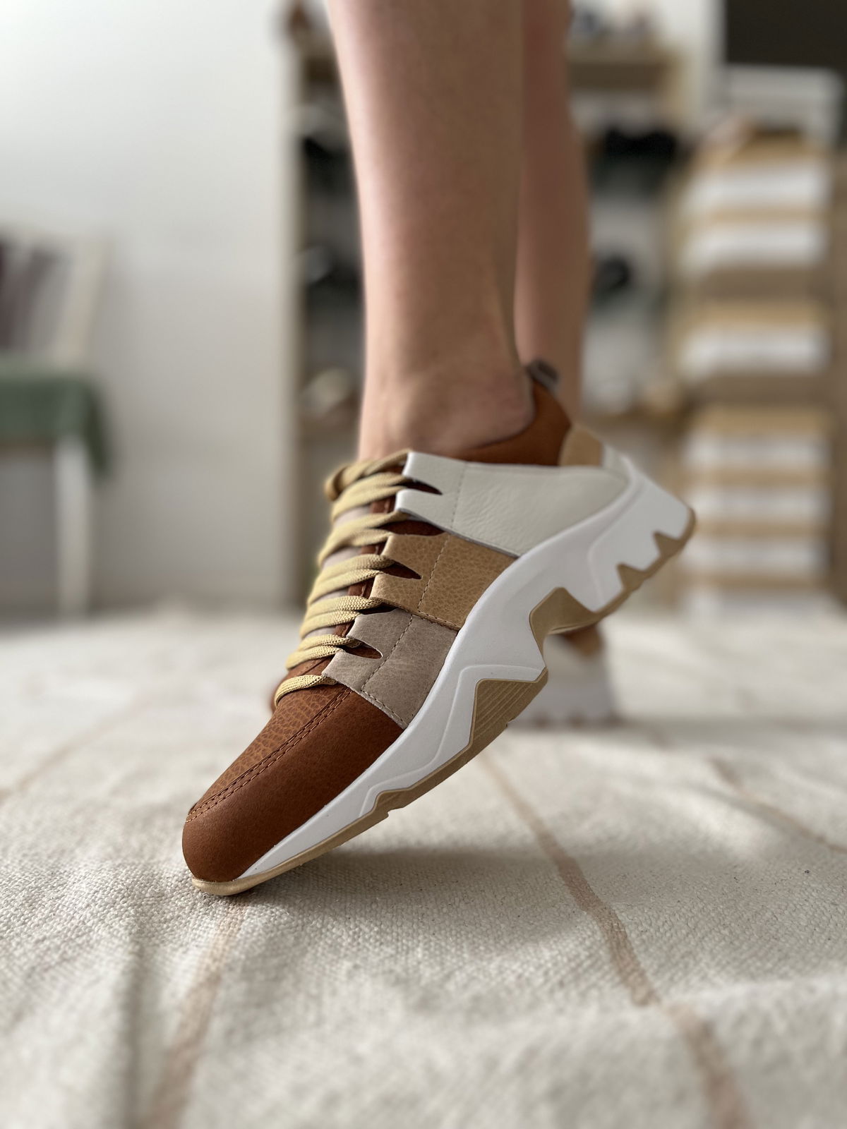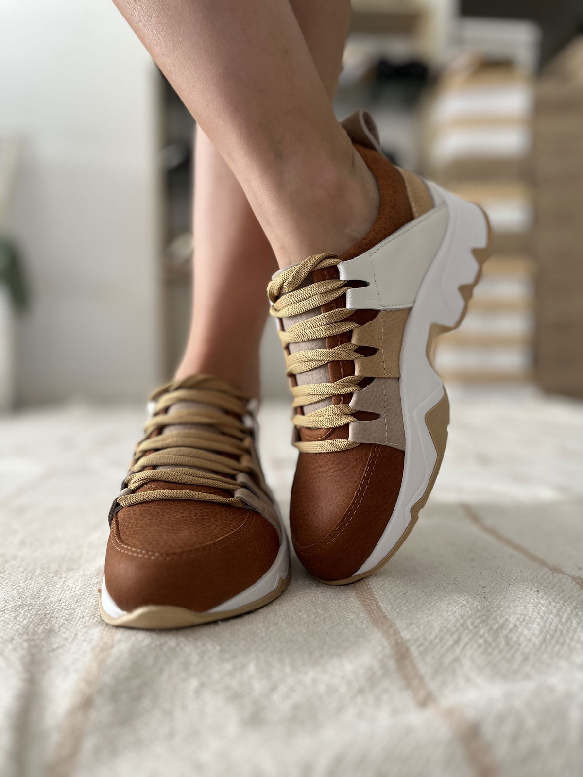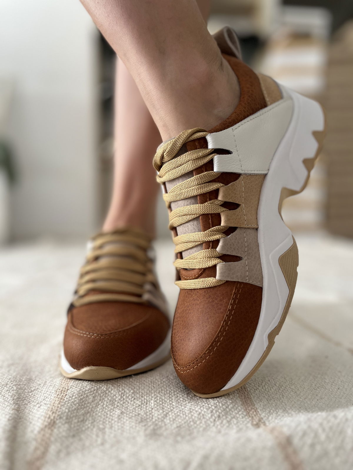 Zapatillas de cuero vacuno combinada con diferentes tonos de suela.